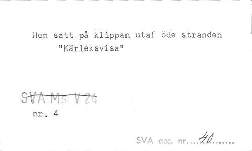 //// Hon satt på klippan utaf öde stranden "Kärleksvisa" //// 04/ A M ¦ ¦ //// O v r \ lv I o V L s- //// nr. 4 //// SVA ccc. nr...dd... ////