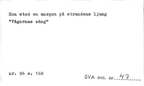 //// Hon stod en morgon på strandens ljung "Vågornas säng" //// nr. 96 s. 168 . //// SVA cjcc. nr...'V.?... ////