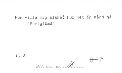 //// Hon ville mig älska'. Hur det än månd gå "Bortglömd" //// s. 8 //// tH? //// // //// SVA ccc. nr...<?r... ////