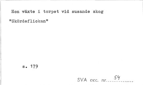 //// Hon växte i torpet vid susande skog "Skördeflickan" //// s. 179 //// CL //// SVA ccc. nr... ////