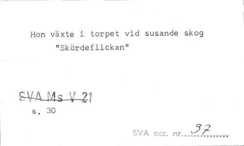 //// Hon växte i torpet vid susande skog "Skördeflickan" //// S¥A Ms V~Z1 //// s. 30 //// SVA ccc. nr. ////