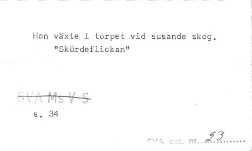 //// Hon växte i torpet vid susande skog. "Skördeflickan" //// s. 34 //// rvA. ccc. nr... ////