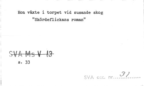 //// Hon växte i torpet vid susande skog "Skördeflickans roman" //// s. 33 //// ? J //// j SVA c.cc. nr—../... ////