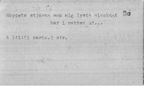 //// -•- ¦ - -.' ' ••••-.•. , • ¦' - ... " ' •••••• • • . Xr //// Hoppets stjärna soin mig lyste slocknat ^ //// har i natten ut.-,. //// 4 141:51 • jViarta, 2 str. . ' ////