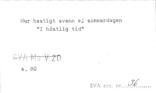 //// Hur hastigt svann ej sommardagen "I höstlig tid" //// ^H^h-f-W //// s. 80 //// SVA ccc. ... ////
