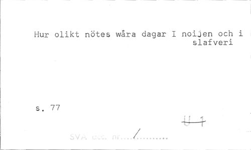//// Hur olikt nötes wåra dagar I noijen och i //// slafveri //// s. 77 //// / ^ ////