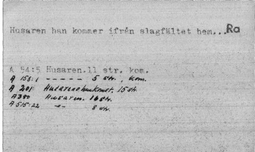 //// Husaren han kommer ifrån slagfältet hem,. //// A 54:5 Husaren.11 str. kom. //// ^ /J7- /---S //// 4 Zt/ du/tre**/fsA- //// fl 3 tv ri+t. /éfjy. //// 9 fsf -ZJ, -vr- f //// '"^i '* . ' . 'I*', 1- , . //// 1 ////