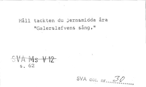 //// Håll tackten du jernsmidda åra "Galerslafvens sång," //// .c //// s, 62 //// SVA ccc. ////