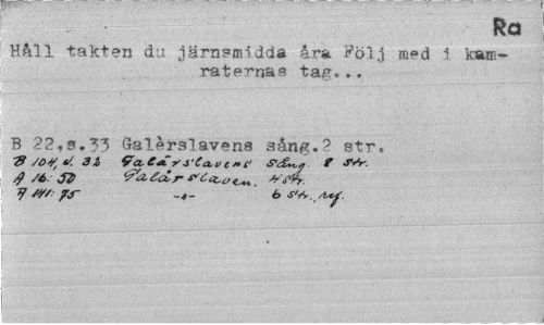 //// na //// Håll takten du järnsmidda åra Följ med 1. kamrat ernås tag... //// B Galerslavens sång.? str. //// # /O^ */. 3 i c»C f JW. ////