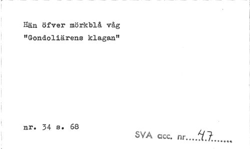 //// Hän öfver mörkblå våg "G-ondoliärens klagan" //// nr. 34 s. 68 //// SVA ccc. nr...jf.7, ////