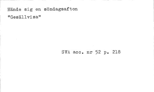 //// Hände sig en söndagsafton "Gesällvisa" //// SVA acc. nr 52 p. 218 ////