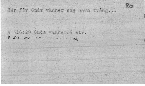 //// R<j //// Här f*r Guds vänner nog hava tvång... //// t ' " ' //// A 516:29 Guds värjter.6 str. 4 S/i, //</ --- - --- ////