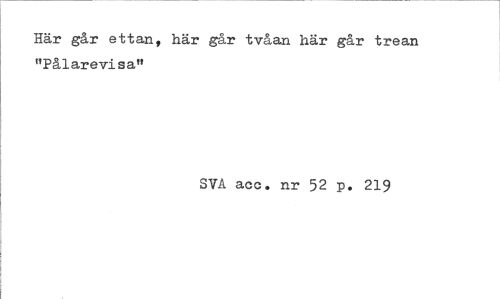 //// Här går ettan, här går tvåan här går trean "Pålarevisa" //// SVA acc, nr 52 p. 219 ////