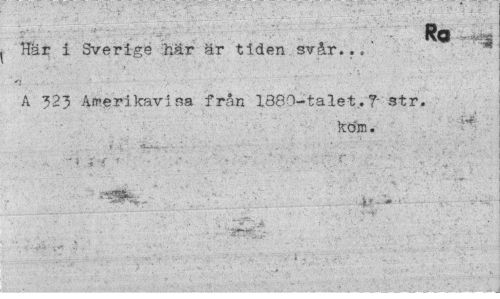 //// Rq 3 //// riär i Sverige här är tiden svår... //// A 323 Amerikavisa från 1880-talet.?- str. //// kom. ////