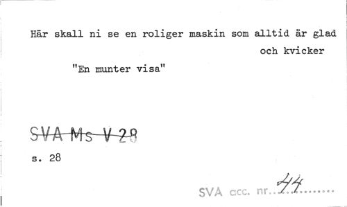 //// Här skall ni se en roliger maskin som alltid är glad //// och kvicker //// "En munter visa" //// s. 28 //// SVA ccc. ... ////
