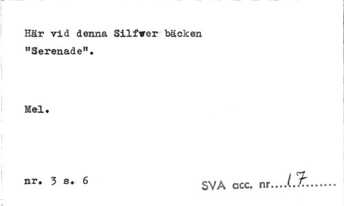 //// Här vid denna Silftrer bäcken "Serenade". //// Mel. //// nr. 3 s. 6 5YA ccc. nr...iH-... ////