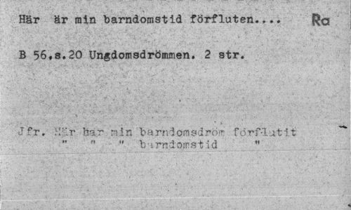 //// Här är min barndomstid förfluten___ //// B 56 ?8.20 Ungdomsdrömmen. 2 str. //// tpt. .;•> bar r-iin barr; Jomsdrö- förflutit " " barndomstid ////