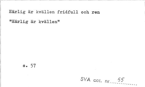 //// Härlig är kvällen fridfull och ren //// "Härlig är kvällen" //// s. 57 //// SVA ccc. nr... ////