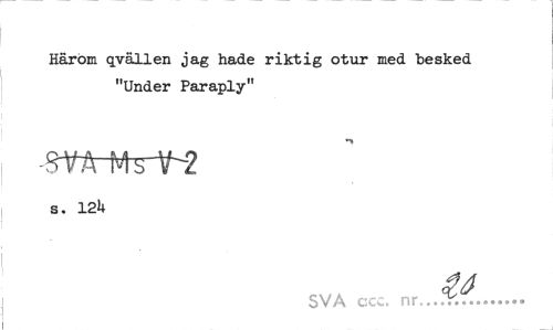 //// Härom qvällen jag hade riktig otur med besked "Under Paraply" //// -3VA Ms V-2 //// s. 12U //// SVA ccc. nr...5^... ////