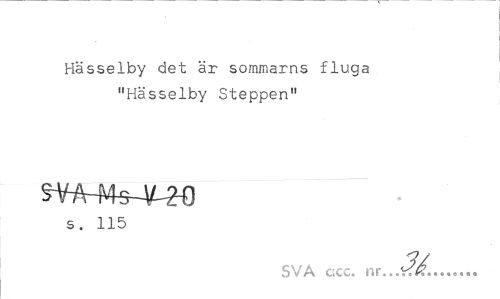 //// Hässelby det är sommarns fluga "Hässelby Steppen" //// s. 115 //// SVA ccc. nr...V?/... ////