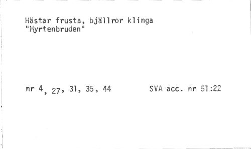 //// Hästar frusta, bjällror klinga "Myrtenbruden" //// nr 4( 27, 31, 35, 44 SVA acc. nr 51:22 //// i ////