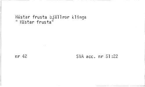 //// Hästar frusta bjällror klinga //// " Hästar frusta" //// nr 42 SVA acc. nr 51:22 ////