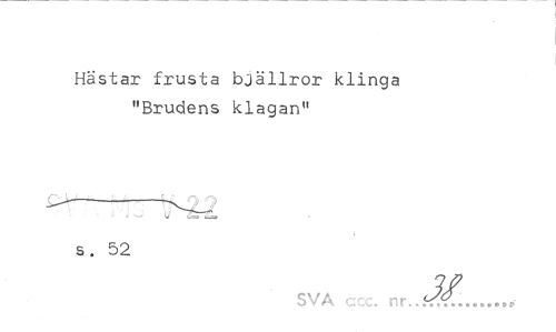 //// Hästar frusta bjällror klinga "Brudens klagan" //// s. 52 //// SVA acc. nr.. ////