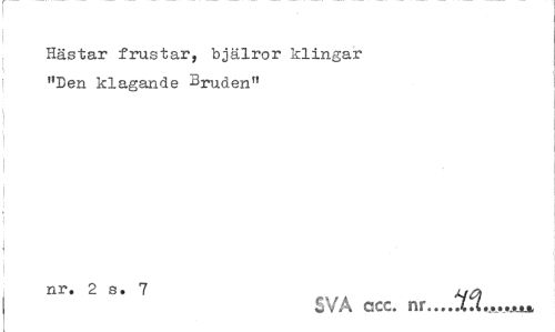 //// Hästar frustar, bjälror klingar "Ben klagande Bruden" //// nr. 2 s. 7 ju q //// SVÅ ccc. nr...4.t...,.ju ////