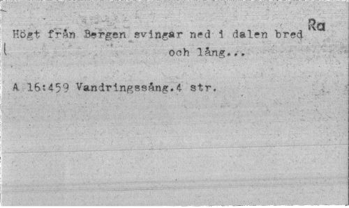 //// Ra //// Högt från Bergen svingar ned 1 dalen bred (, och lång».» //// k 16t459 Vandringssång.4 str. ////