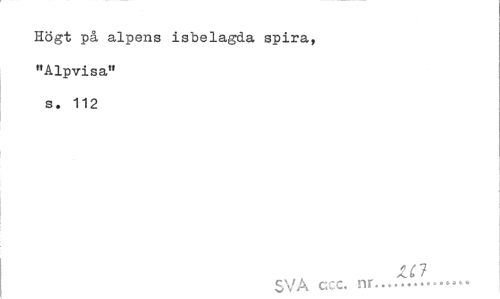 //// Högt på alpens isbelagda spira, "Alpvisa" s. 112 //// JLC? //// SVA ccc. nr...""»'" ////