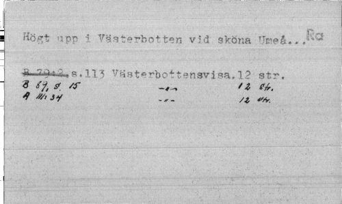 //// r //// ¦ Högt upp t Västerbotten v!d sköna T7me&**# //// ¦B IV* Västerbottensvisa, 1.? str. //// " 3 g% sf. & //// 4 ///> 3i /1 //// I . //// I //// I • ////