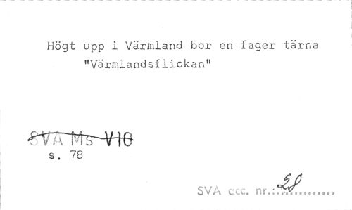 //// Högt upp i Värmland bor en fager tärna "Värmlandsflickan" //// s. 78 //// SVA ccc. nr... ////
