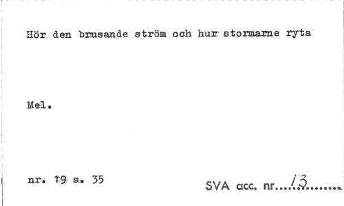 //// Hör den brusande ström och hur stormarne ryta Mel. //// nr. T9 s. 35 CwA / S //// SVA acc. nr...'..V... ////