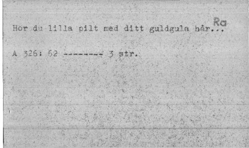 //// Ra //// Hor du lilla pi.lt med ditt guldgula har... A 32.6; 52 —---3 str. //// - *¦••"' .rv . ' ''- ' ; > -'."-V'..'. . //// I ' - , : : ' - ' //// . • '/'. , : " ' . -C, ..*'' ' * • •' . . v ft- ' "• //// • ' • ' • ' ¦' • .v • ¦ .¦*'".- .¦ ' >. ¦ > • ,. , • ... //// • •• .. -• > --yr- //// '" ; • •• K. , . .>: //// • • v '1 .t*---Vi - . ' ////