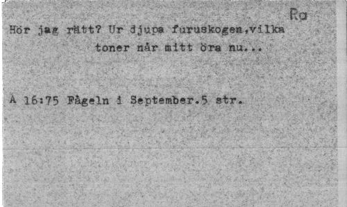 //// ¦ pQ * //// Hor m mtt? Ur djup» furuskogen,vilka //// toner når mitt öra nu... //// A 16:75 Fågeln i September.5 str. //// i ' * ' •• ¦¦• ¦ ••- ¦¦ . ¦ .. " j ¦ ...-¦ ¦'• ' ... " .• , • < //// mmmmmmmsmMmm ////