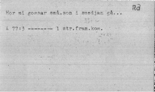 //// Hör ni /roffar små.son i smedjan gå... Ä 77:3---1 str. fram.kom. ////