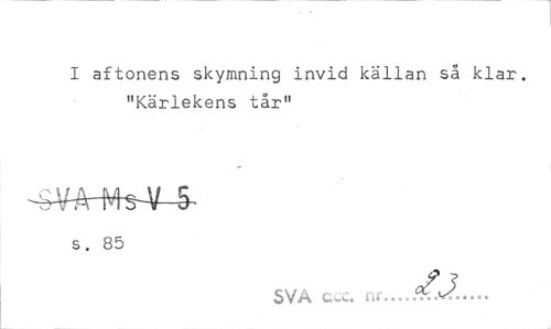 //// I aftonens skymning invid källan så klar. "Kärlekens tår" //// s. 85 //// 9 j //// SVA c.~c. nr.• • •« ////
