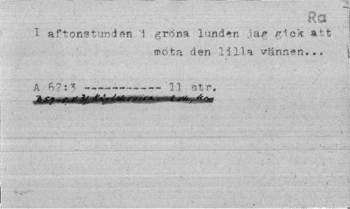 //// Ra //// 1 aftonstunden i gröna lunden .iag g.i c k att //// möta den lilla vännen... //// A ---1] str. //// lé rmir* iwmdh** j »for ////