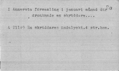 //// I Annersta församling i januari månad dar dronknade en skräddare... //// c //// A 211 f? En skräddares ändalyckt.4 str.kom. , t //// • ' ; ¦¦ v 'v'- ' .". V '.¦ P ' ~ "' ¦ < ////