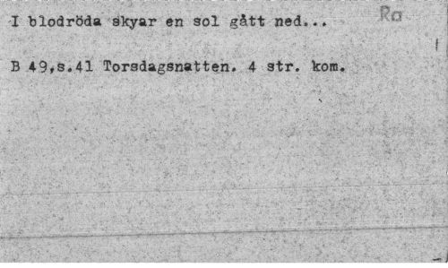 //// ¦ ¦'¦ "f '¦¦'' r?o ¦ //// I blodröda äkyar en sol gått ned... B 49,8.41 Torsdagsnatten. 4 str. kom. //// s ////
