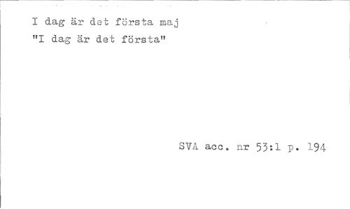 //// 1" dag är det första maj "I dag är det första" //// SVA acc. nr 53:1 p. 194 ////