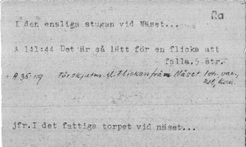 //// llQ //// t den ensliga stugan vid Näset... //// A 1 ils44 Det"är så lätt för en flicka att //// falla,5 str.- //// 3 ft jf. ffq for</+ reJean/ramt, /f^as-^f. ¦ o^., //// jfr.I det fattiga.torpet vid näset... ////