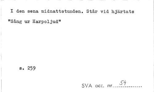//// I den sena midnattstunden. Står vid hjärtats "Sång ur Harpoljud" //// s. 259 //// SVA acc. nr...:?.f... ////