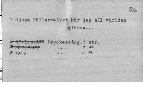 //// Ra //// I djupa källarvalvet här jag all världen //// glömma... //// ¦U a. ITf- Dryckessång.3 str. //// ~B <7g -. i * S: _ , _ 3 ^. //// J - J ////