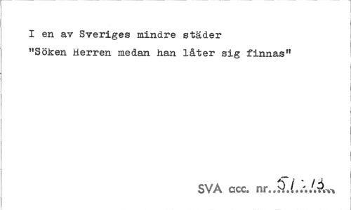 //// I en av Sveriges mindre städer //// "Söken Herren medan han låter sig finnas" //// SVA ccc. nr..ä.f. ////