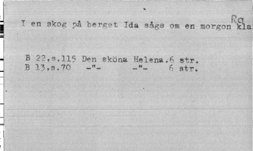 //// Ref //// IT en skog på berget Ida sågs om en morgon kla //// - //// B 22«s.115 Oen sköna Helena.6 str. B l%s.?n -H~ r str. //// I //// ¦ ////