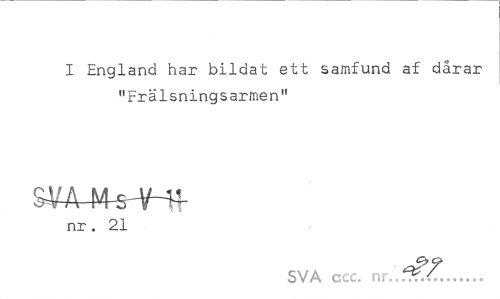 //// I England har bildat ett samfund af dårar "Frälsningsarmen" //// nr. 21 //// SVA ccc. nr..S.l.':.(<?'... ////