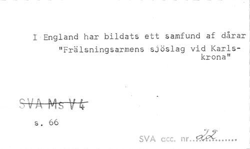 //// I England har bildats ett samfund af dårar //// "Frälsningsarmens sjöslag vid Karlskrona" //// SWHfcrtfir //// s. 66 //// SVA ccc. nr..S.l.':.(<?'... ////