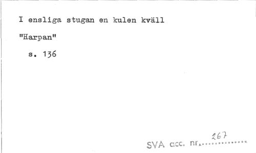//// I ensliga stugan en kulen kväll "Harpan" s. 1J6 //// ta //// SVA ccc. nr,. ////