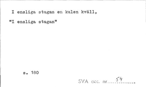 //// I ensliga stugan en kulen kväll, "1 ensliga stugan" //// s. 180 //// SVA ccc. nr..S.l.':.(<?'... ////